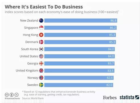 在世界银行发布的《2020年营商环境报告》中,新西兰凭借高效的手续办理和宽松的营商环境,在调查的190个经济体中排名第一,成为世界上最适合经商的地区之一。在新西兰注册公司只需要1天,而注册一个物业只需要两天,而相比全球创办公司的平均时间是21天。